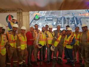 وصل منذ قليل جبار اللعيبي وزير النفط النفط العراقي الي حقل السيبة لافتتاح اعمال تطوير محطة معالجة الغاز بالحقل جنوب العراق وهو المشروع الذي نفذته شركة بتروجت ورصد موقع باور نيوز بالصور تفقد الوزير لاعمال المشروع بمبني S.S.B واستمع الوزير الي شرح من المهندس خالد العزب مدير عام المشروع
