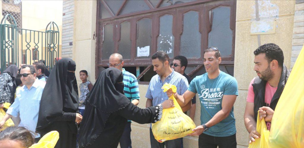 حيث تم توزيع حوالى 1100 شنطة رمضانية لهذا العام وهذا التقليد يتم للسنة السابعة علي التوالي