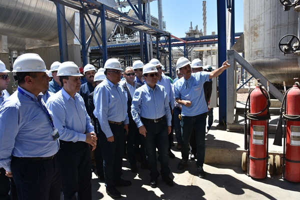 وتفقد الملا سير العمل بالوحدات الإنتاجية بالمجمع والتي تقوم بتوفير انتاج متنوع من المواد البتروكيماوية والتي تستخدم كمدخلات أساسية في العديد من الصناعات او كمواد تغذية في مراحل متطورة من الصناعات البتروكيماوية والتي تشمل الإيثيلين والبولى ايثيلين والبيوتين إضافة الى النافتا والبوتاجاز حيث ارتفع اجمالى الطاقة الإنتاجية السنوية الى حوالى 413 الف طن سنوياً خلال العام الحالي انعكاساً لنجاح خطط التطوير وزيادة الانتاج ، واستمع الى شرح حول دور الوحدات الإنتاجية في تأمين جانب مهم من احتياجات السوق المحلى من خلال توجيه نحو 70% من انتاج مجمع سيدبك للاستهلاك المحلى بالإضافة الى تصدير 30% من اجمالى الانتاج للمساهمة في توفير النقد الاجنبى للاقتصاد القومى حيث بلغ حجم صادرات منتج البولى ايثيلين نحو 65 الف طن سنوياً اغلبها للأسواق الأوروبية .