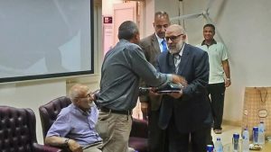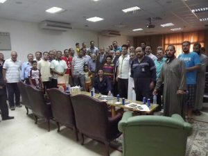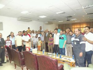 في لفتة انسانية غير مسبوقة حرص امس الجمعة الدكتور محمد الخياط رئيس هيئة الطاقة الجديدة والمتجددة علي تكريم احد الفنيين بموقع الزعفرانة لبلوغه سن المعاش وحرص العاملون بالموقع بعد نهاية حفل التكريم علي التقاط الصور التذكارية برفقة الدكتور الخياط
