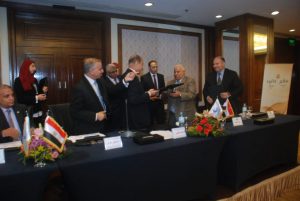 وتمت مراسم التوقيع بمشاركة ماجد فهمي رئيس مجلس الادارة والعضو المنتدب لبنك التنمية الصناعية والمهندس مصطفي ربيع رئيس مجلس ادارة شركة سينا جاس والمهندس محمد حسن حافظ قنديل رئيس مجلس ادارة شركة غاز القاهرة وجمال خليف رئيس مجلس ادارة شركة بتروتريد ولفيف من قيادات البنك ووزارة البترول ومراسلي التليفزيون والقنوات الفضائية