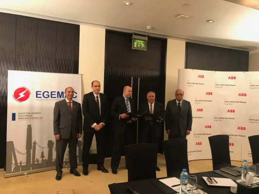 يتم الان توقيع اتفاقية الشراكة بين شركة اجيماك وABB لتوريد سكاكين فصل على الحمل معزولة بالغاز وحضر التوقيع المهندس مدحت رمضان رئيس مجلس الادارة والعضو المنتدب عن شركة اجيماك والمحاسب محمد عبد الحكم المدير المالى لشركة ABB