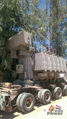 وصول عدد 2 محول قدرة(2*20) م.ف.أ استعدادا لتركيبهما بمحطة محولات البويطي بالواحات البحرية جهد 11/33 ك.ف بدلاً من محولين قدرة(2*10) م.ف.أ عقب أجازة عيد الأضحى المبارك