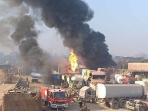 حصل موقع باور نيوز علي الصور الاولي لنشوب حريق في مخزن سولار وبنزين بمنطقة السلام شرق القاهرة.