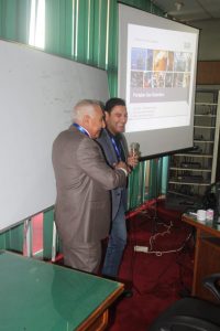 و قدم الكيميائي احمد عبد الناصر هدية تذكارية للدكتور طلعت البهلول عرفانا بالجهد المبذول والاداء المتميز للأكاديمية.