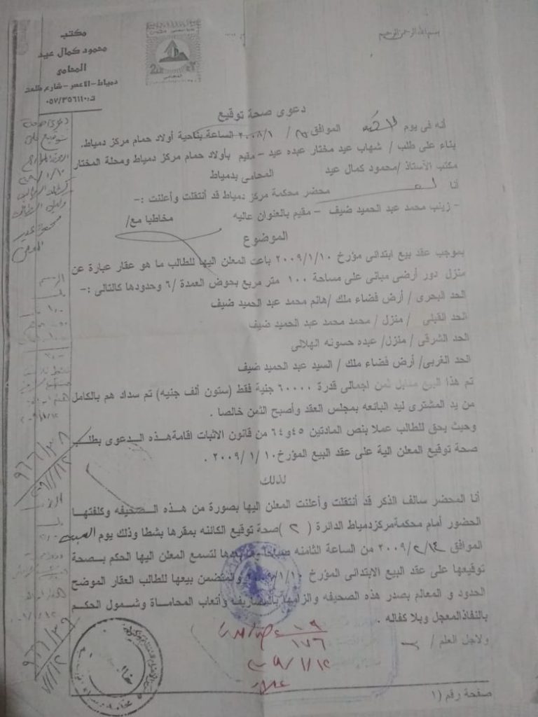 خامسا ظهر عليه الثراء فجاه وامتلك منزل من ثلاث طوابق بالفعل امتلك منزل بقريتي بأولاد حمام عباره عن دور ارضى ودور اول علوى ولم يتم صب الدور الثالث وتم انتقاله لملكيتي عن طريق البيع من والدتي متعها الله بالصحة والعافية في 10/1/2009 فاين كانت (ج ت) مرفق عقد البيع اما الشقة التمليك بدمياط الجديدة فهي شقه ايجار من 1/9/2016 مرفق عقد الايجار وتم تجديد الايجار بعد سنتين في 26/7/2018 مرفق عقد الايجار الجديد