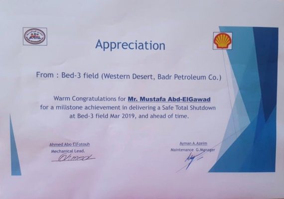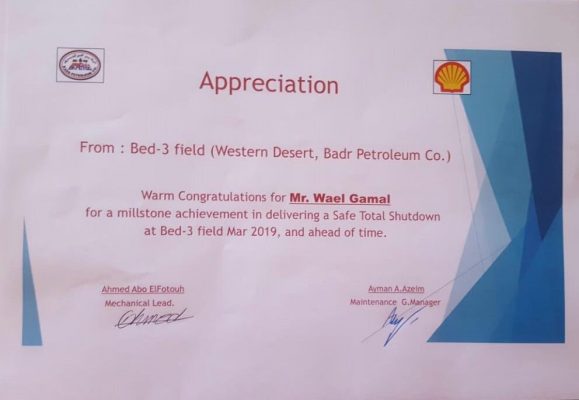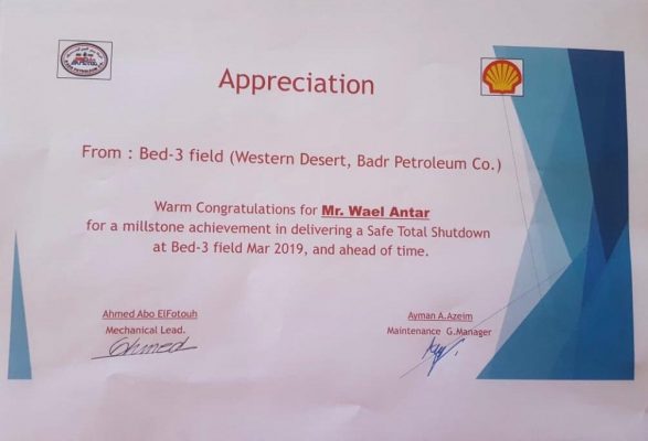 و في احتفال أقيم في حقول بدر الدين و بمشاركة المهندس عبد الوهاب المغاوري مدير الحقول و المهندس أيمن عبد العظيم مدير عام الصيانة و المهندس يوسف حسانين المسئول عن تنفيذ خطة الصيانة أشاد مسؤلوا شركة بدر الدين بالمشاركة المتميزة لفريق العمل بقسم الخدمات الصناعية بشركة سابيسكو و بالإحترافية العالية في تنفيذ جميع أعمال الإختبارات الفنية و التى راعت اشتراطات الجودة و السلامة.