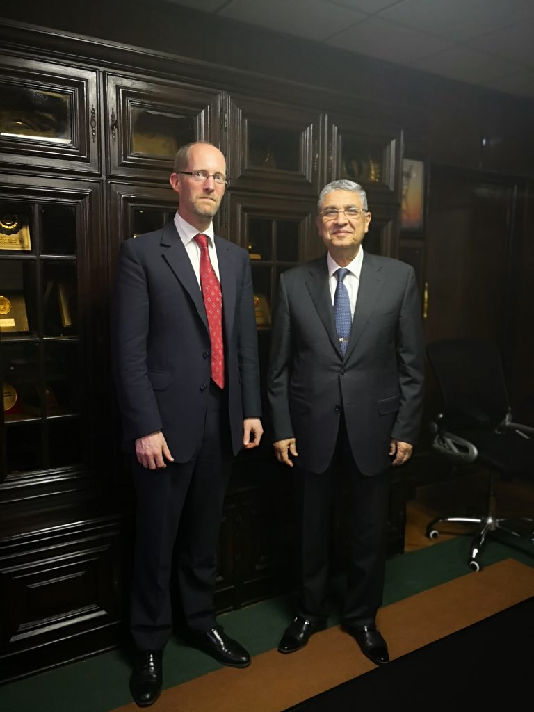 إستقبل الدكتور محمد شاكر وزير الكهرباء والطاقة المتجددة Harry Boyd Carpenter مسؤول ملف الطاقة بالبنك الأوروبى لإعادة الإعمار والتنميةEBRD والسيد أحمد المقدم مصرفى رئيسى بقطاع الطاقة لأوروبا والشرق الأوسط بالبنك والوفد المرافق لهما ، وذلك لبحث سبل دعم وتعزيز التعاون بين قطاع الكهرباء والبنك .