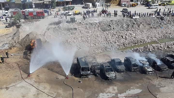 حريق هائل اندلع صباح اليوم السبت أثر حدوث كسر بماسورة غاز طبيعى بمنطقة كرموز غرب الاسكندرية ما اسفر عن احتراق 9 سيارات وتوكتوك دون حدث اصابات