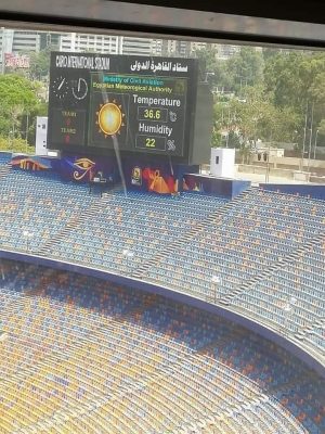 كما سيتم تركيب محطة أرصاد جوية داخل ستاد القاهرة من أجل إظهار بيانات الحرارة أولا بأول على شاشة الاستاد.