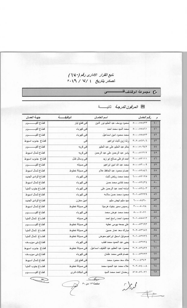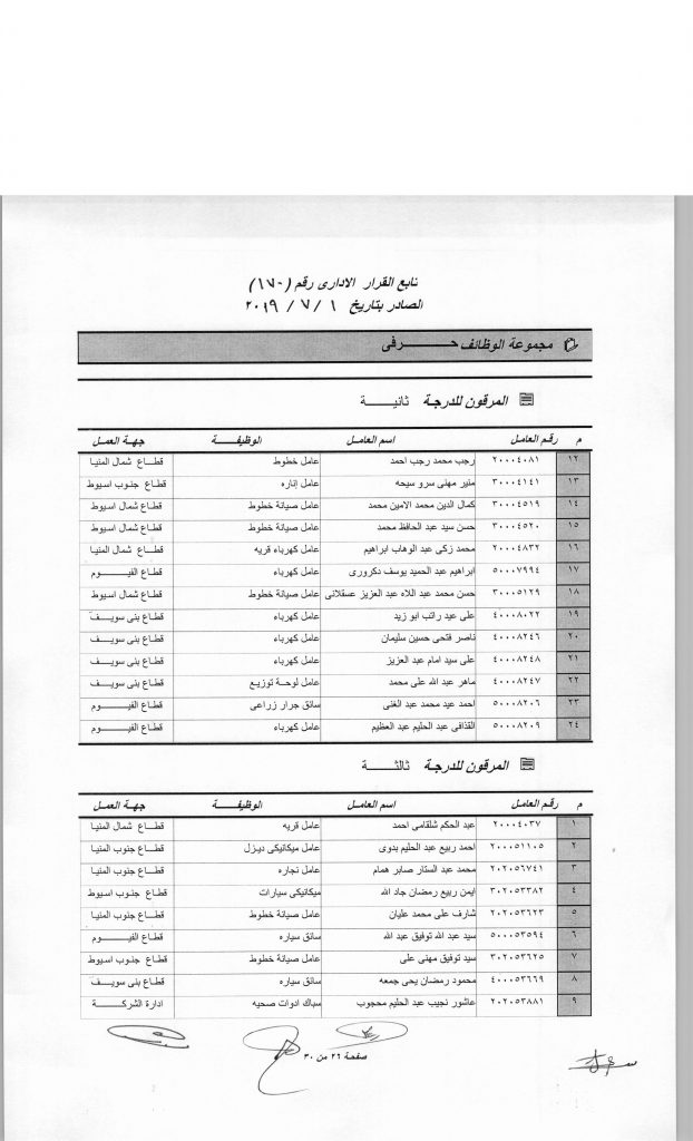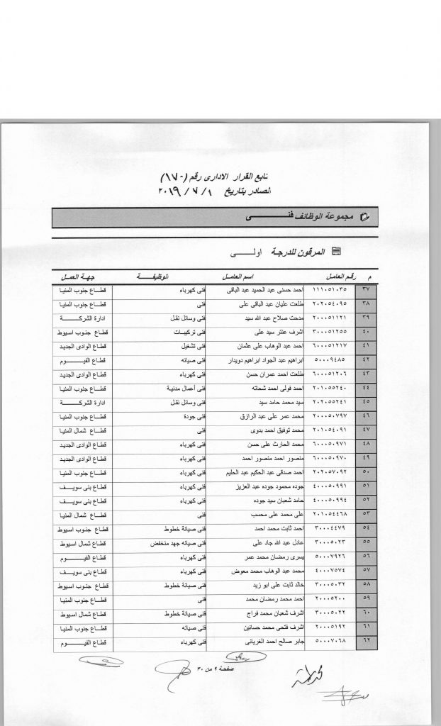 60 عاملا الى الدرجة الثالثة