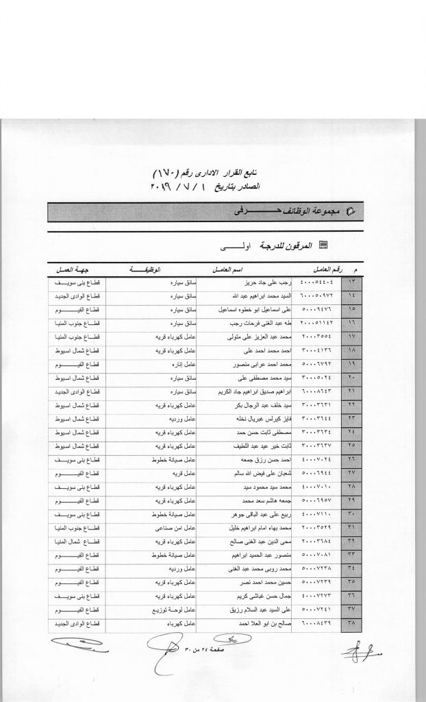 316 عاملا الى الدرجة الاولى