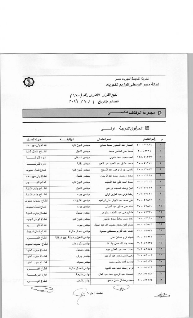 اعتمد المهندس رأفت حسين شمعة رئيس شركة مصر الوسطي لتوزيع الكهرباء قراراً بترقية 687 عاملا بمختلف الدرجات الوظيفة و تثبيت 56 فنى يعملون بمكافأة شاملة