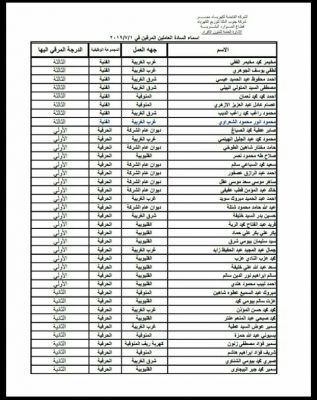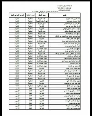 ثانيا : الترقية الى وظائف الدرجة الثانية وعددهم 405 عاملا : اولهم المهندس حسام عبد الرحمن على فايد وأخرهم السيد وجيه مبروك على خطاب