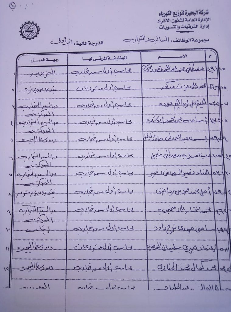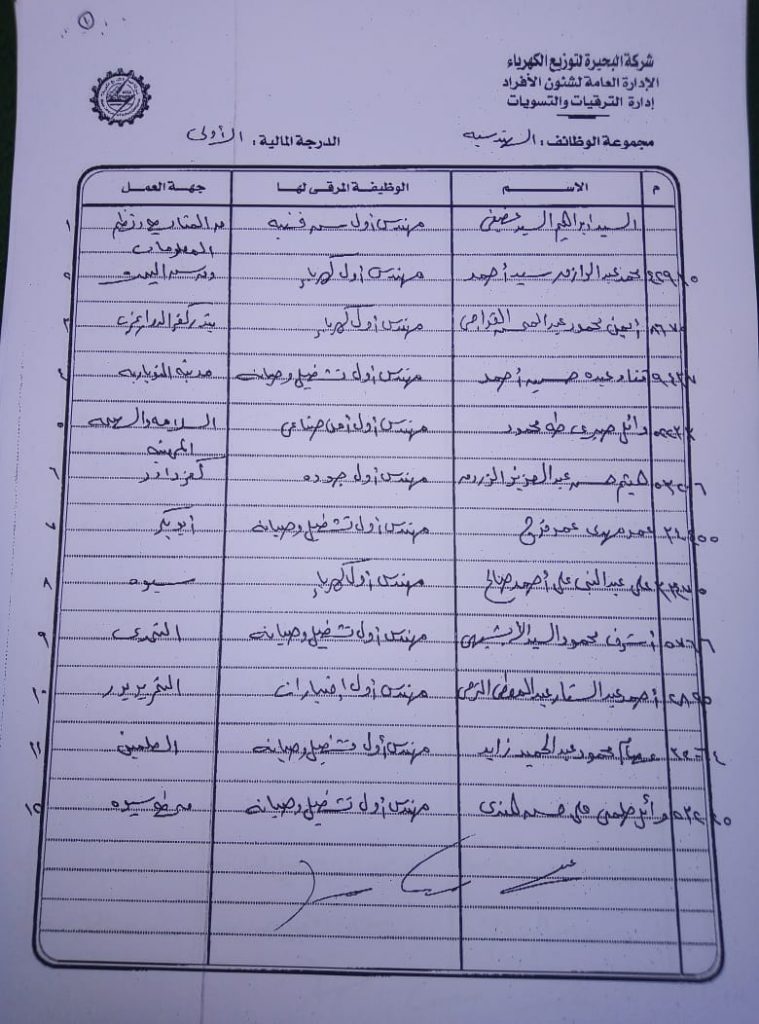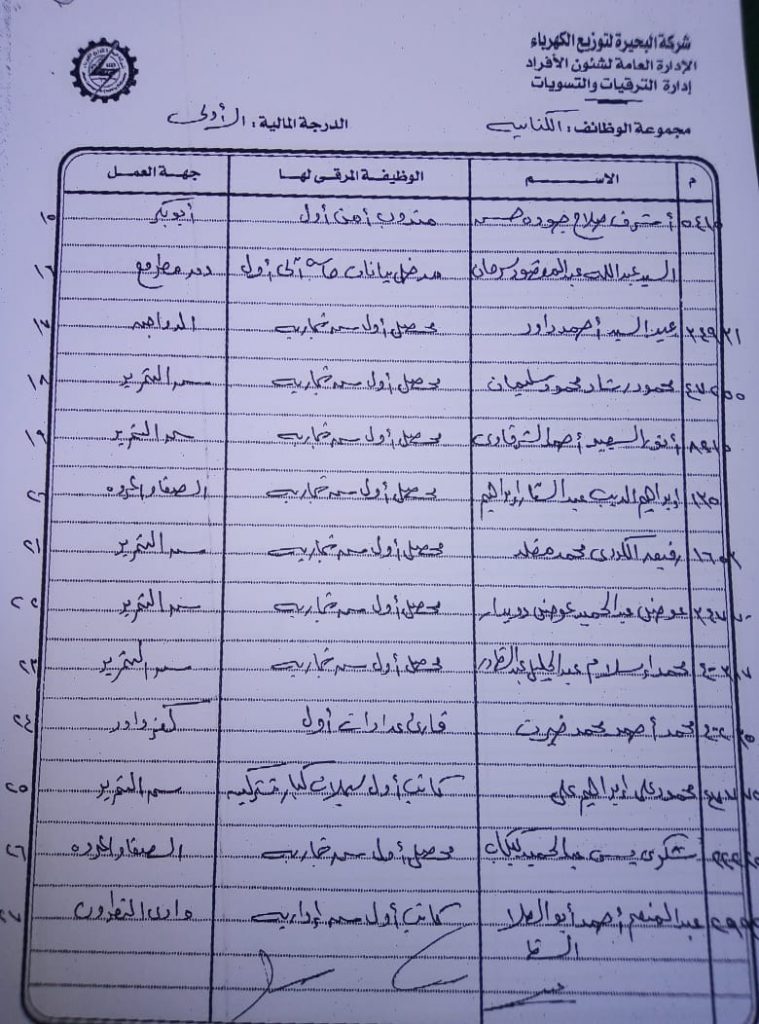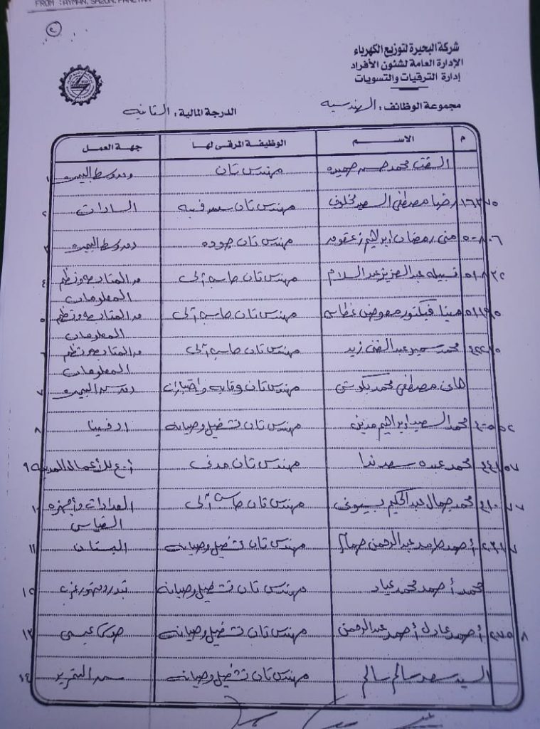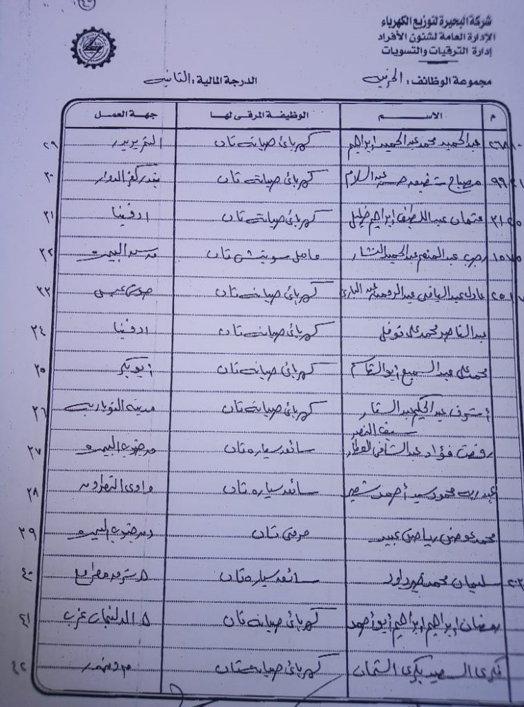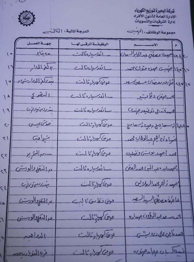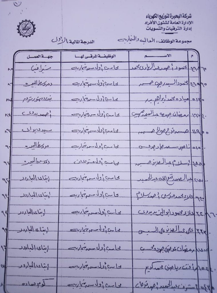 اصدر المهندس حمدي عكاشة رئيس مجلس إدارة شركة كهرباء البحيرة والعضو المنتدب قرارا بحركات ترقيات لنحو 656 عاملا بمختلف الدرجات الوظيفة الهندسية والمالية والتجارية والتنمية الادارية والوظائف الفنية والكتابية والوظائف الحرفية والخدمات المعاونة