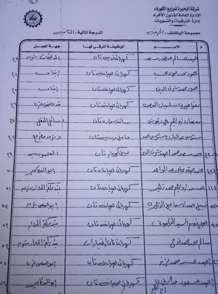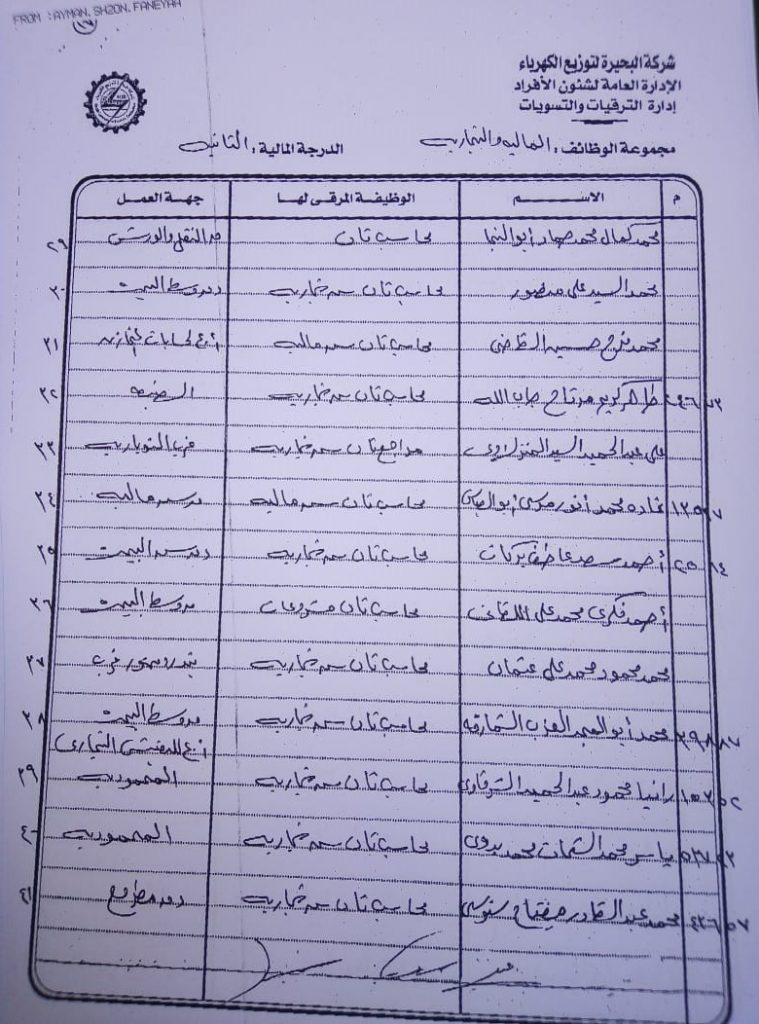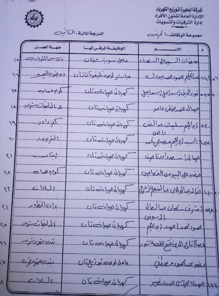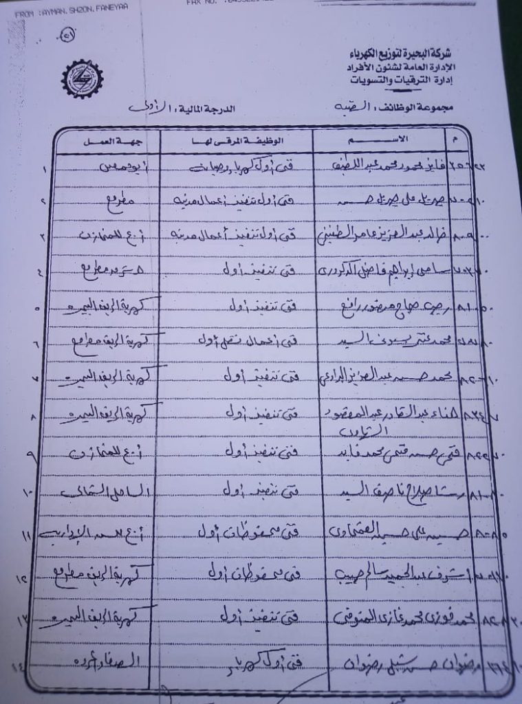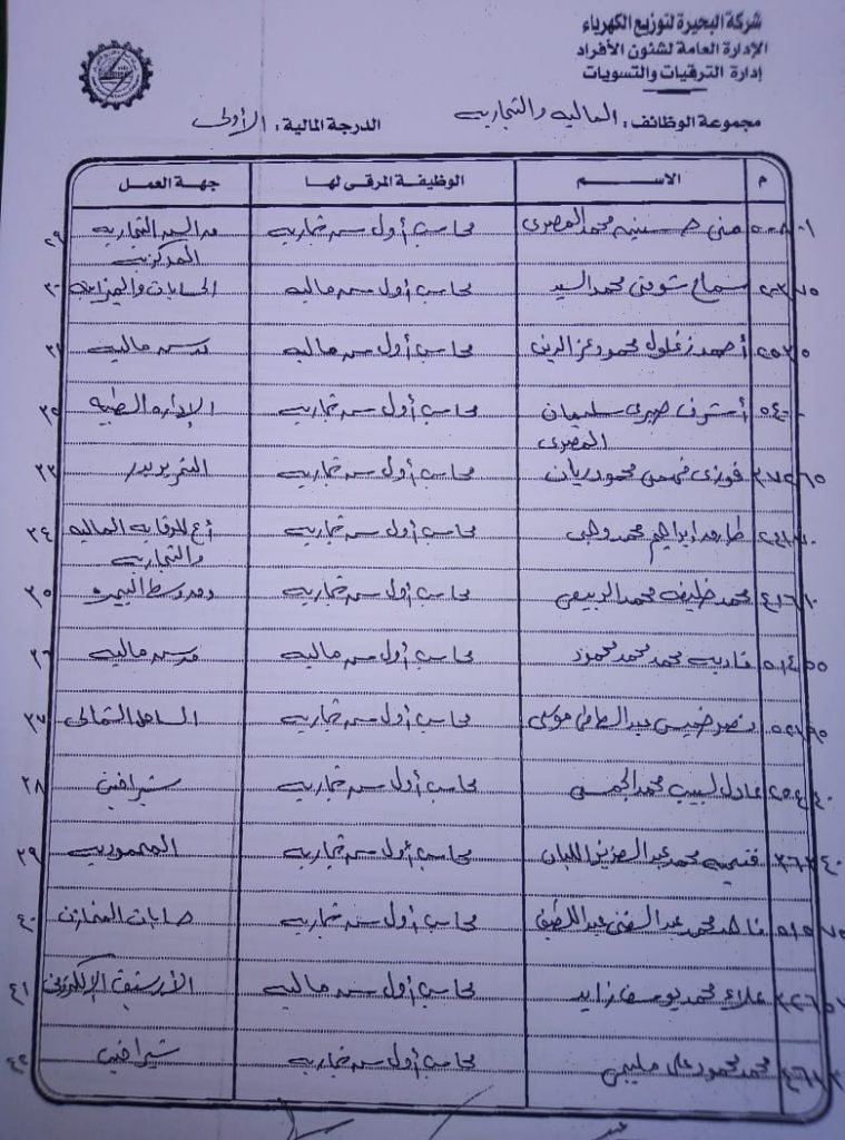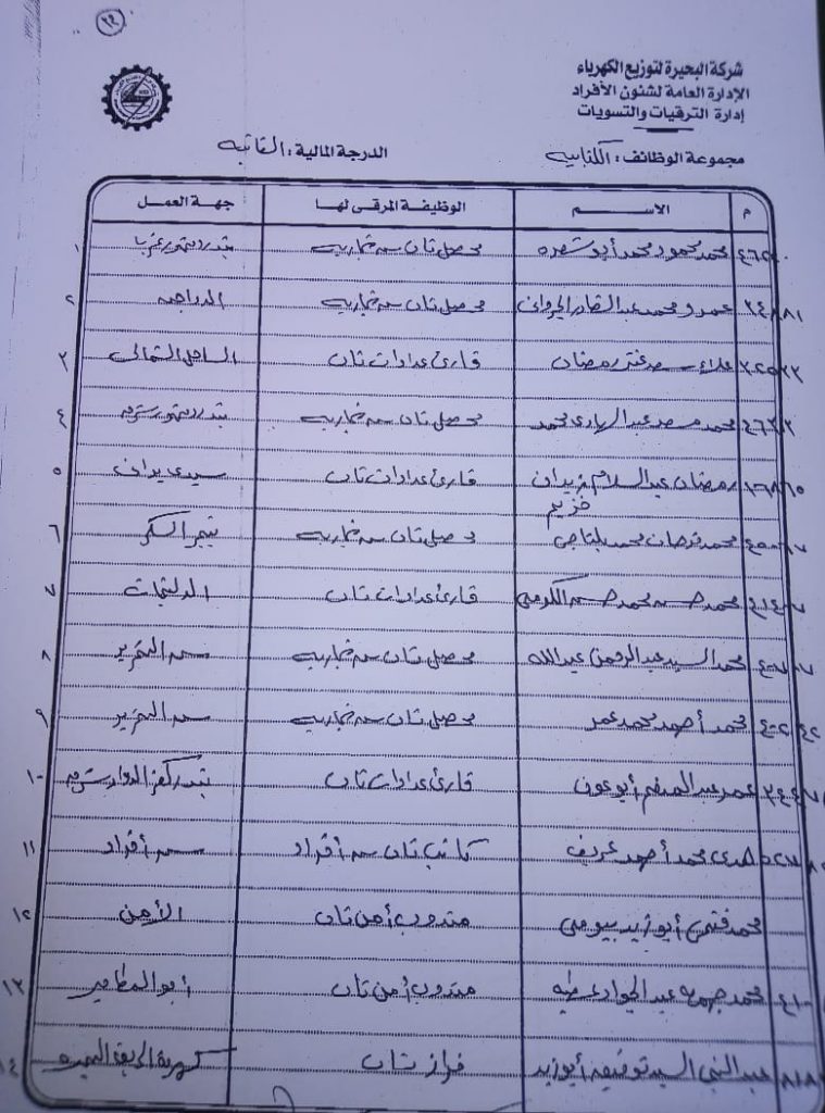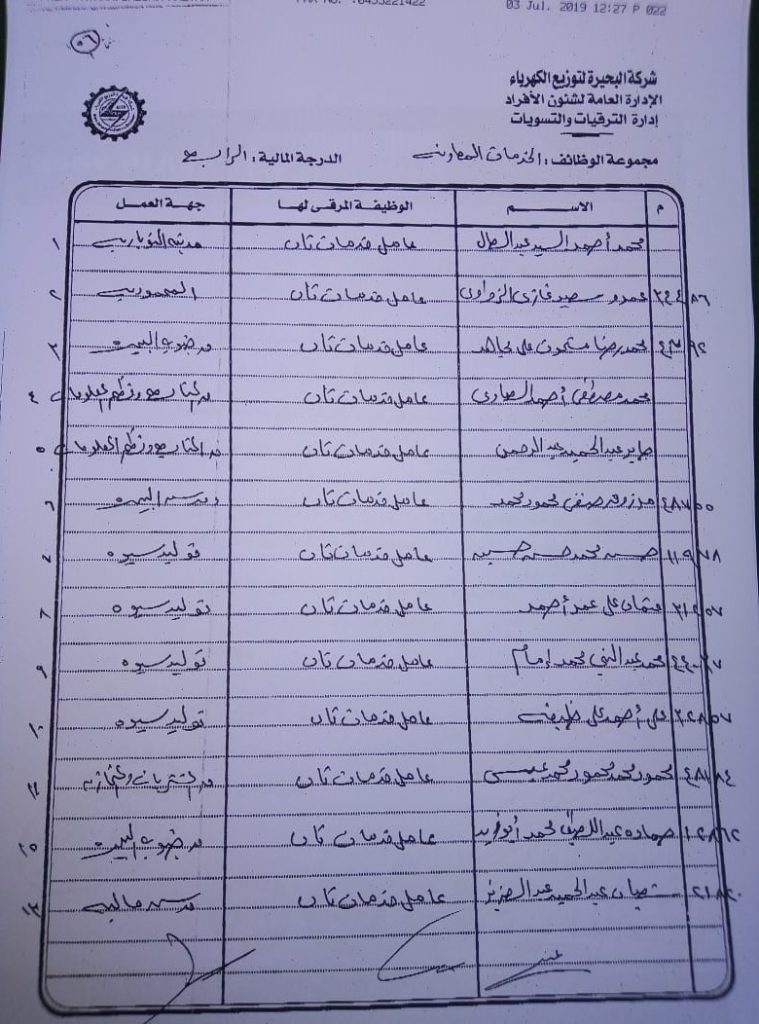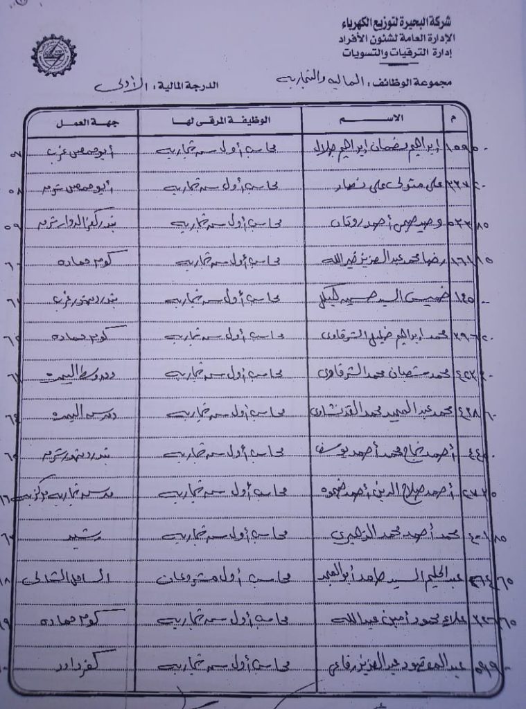 اصدر المهندس حمدي عكاشة رئيس مجلس إدارة شركة كهرباء البحيرة والعضو المنتدب قرارا بحركات ترقيات لنحو 656 عاملا بمختلف الدرجات الوظيفة الهندسية والمالية والتجارية والتنمية الادارية والوظائف الفنية والكتابية والوظائف الحرفية والخدمات المعاونة