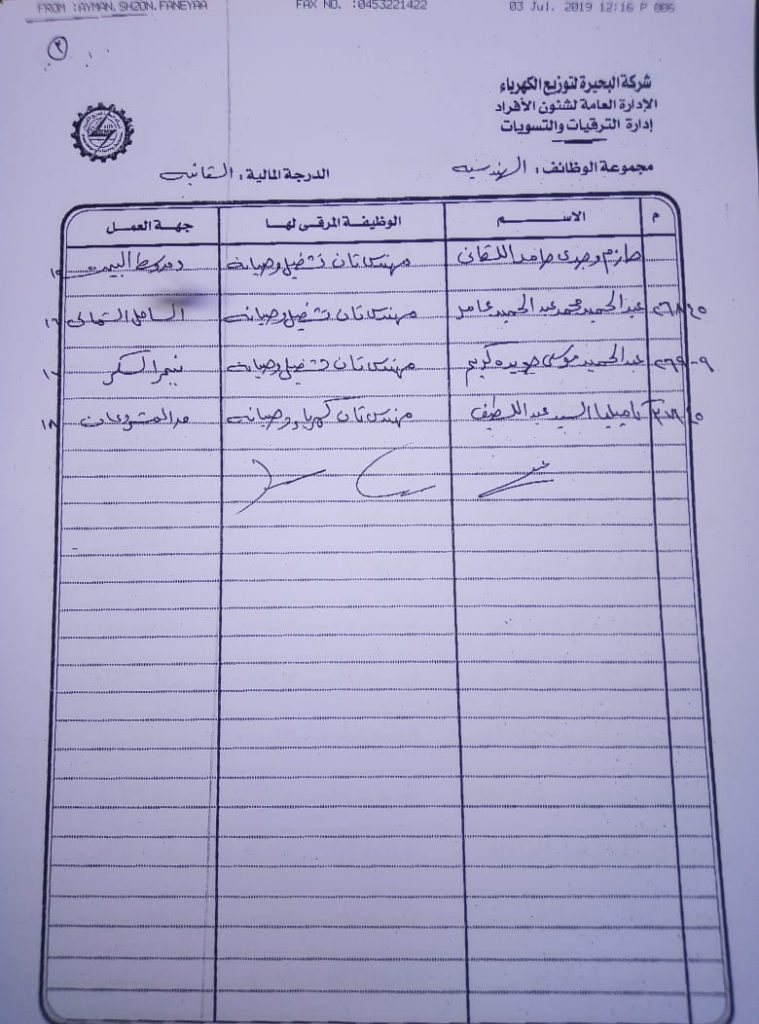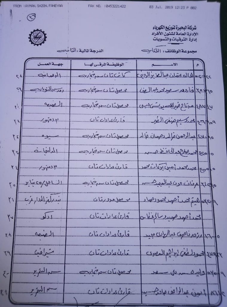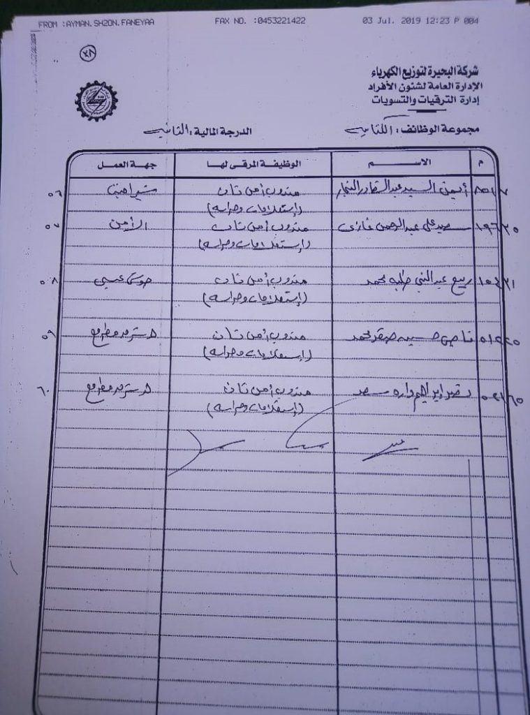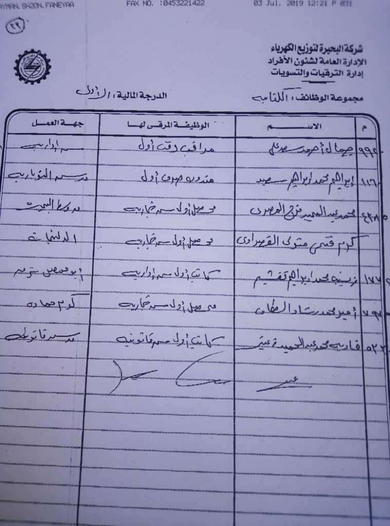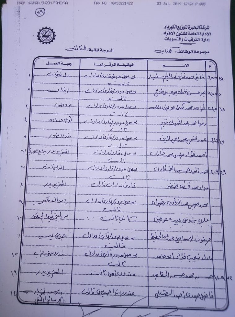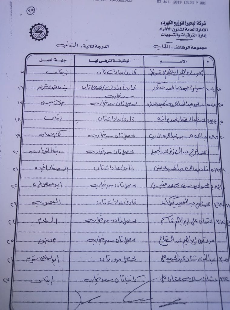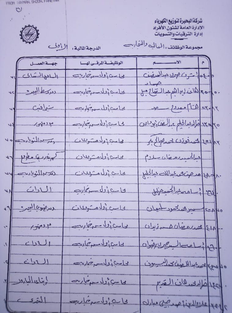 اصدر المهندس حمدي عكاشة رئيس مجلس إدارة شركة كهرباء البحيرة والعضو المنتدب قرارا بحركات ترقيات لنحو 656 عاملا بمختلف الدرجات الوظيفة الهندسية والمالية والتجارية والتنمية الادارية والوظائف الفنية والكتابية والوظائف الحرفية والخدمات المعاونة