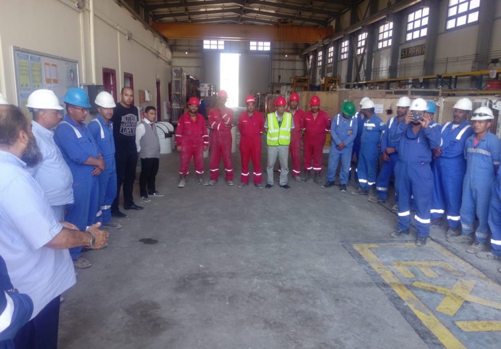 نظمت اليوم شركة رشيد للبترول تحت قيادة المهندس صبري الشرقاوي رئيس الشركة وقفة للسلامة (Safety stand-Down) في جميع مواقع العمل “ادكو ، أبوقير ، المشروعات بالمعدية ، الحفار DS-7″ وذلك تأكيداً على الريادة والأهتمام بنظم السلامة والصحة المهنية وحماية البيئة بالشركة وحرصا من قيادات رشيد للبترول علي الدعم المستمر للسلامة والصحة المهنية وحماية البيئة وجعلها قيمة أساسية تحت شعار ” السلامة أولاً – SAFETY IS FIRST” ، بحضور عمر هلال المدير العام والعضو المنتدب بشركة شل مصر يرافقه مساعدو رئيس الشركة وعدد من مديرو العموم