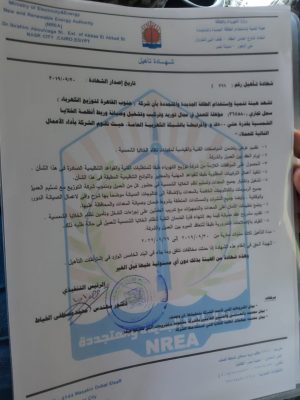 استطاعت شركة جنوب القاهرة لتوزيع الكهرباء وتحت رئاسة المحاسب محمد محمود السيسى فى ان تكون اول شركة بين شركات توزيع الكهرباء الحاصلة على شهادة من هيئة تنمية الطاقة الجديدة والمتجددة للعمل فى مجال توريد وتركيب وتشغيل وصيانة وربط أنظمة الخلايا الشمسية بقدرة حتى 500 ك. ف. أ لتبدأ شركة جنوب القاهرة لتوزيع الكهرباء مرحلة جديدة من فتح باب استثمارات جديدة فى مجال الطاقة الشمسية والقيام بتوريد وتنفيذ وتركيب وصيانة المحطات لأى منشأة ترغب فى ذلك بإشراف وتنفيذ مهندسى شركة جنوب القاهرة لتوزيع الكهرباء