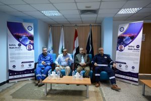 وقد قام الكيميائي ياسر محمود عبدالباقي مدير إدارة السلامة والصحة المهنية بالشركة والكيميائي حسام مرسي نائب مدير السلامة والصحة المهنية بعرض فيديوهات توعية عن ضرورة الاهتمام بالسلامة والصحة المهنية وأخري خاصة بقواعد الحفاظ علي الحياة.