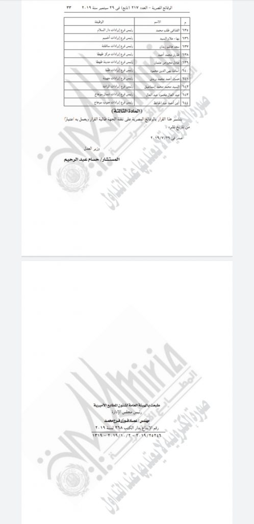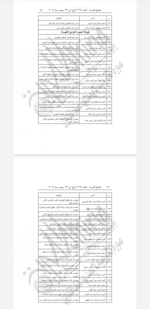 وكان المستشار محمد حسام عبدالرحيم، وزير العدل قرر تخويل العاملين شاغلي الإدارة العليا بشركات توزيع لكهرباء التابعة للشركة القابضة لكهرباء مصر الآتية أسماؤهم بصفتهم الوظيفية كل في دائرة اختصاصة صفة مأموري الضبط القضائي، وذلك بالنسبة للجرائم التي تقع بالمخالفة لأحكام قانون الكهرباء رقم 78 لسنة 2015.